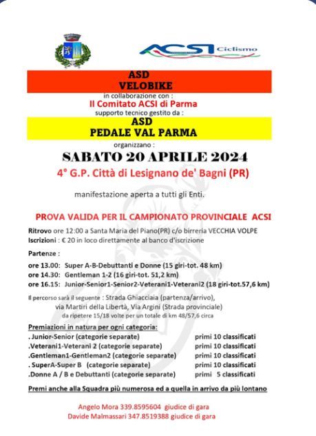 ASD VELOBIKE e COMITATO ACSI CICLISMO PARMA