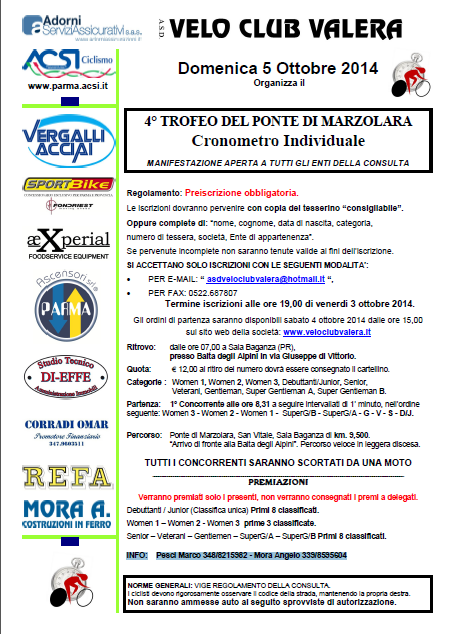 CRONOMETRO INDIVIDUALE - 13° TROFEO DEL PONTE DI MARZOLARA - 8° MEMORIAL GIAN FRANCO BELLE'