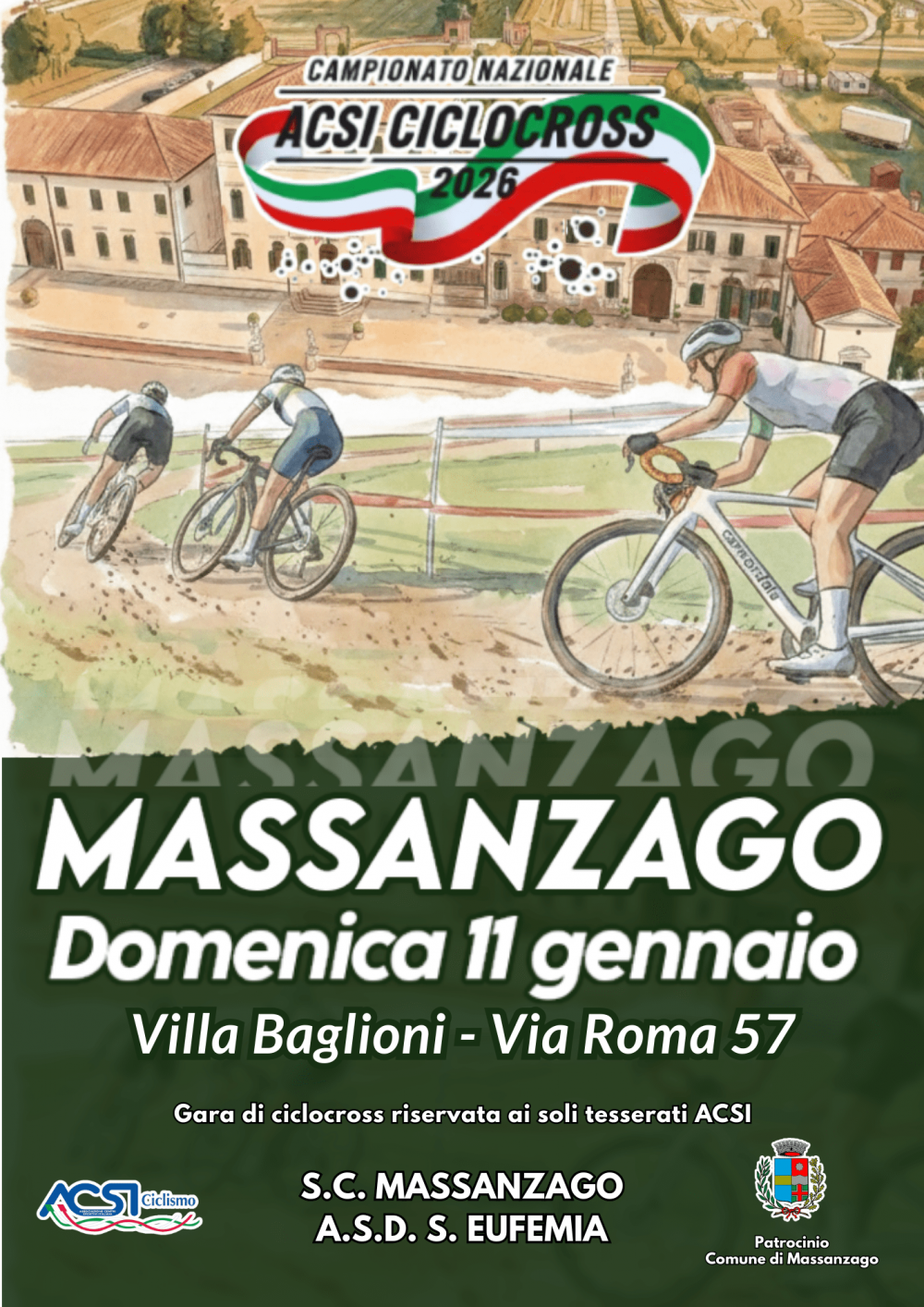 Domenica 11 gennaio 2026, a Massanzago (Padova), nello splendido scenario del Parco di Villa Baglioni, si è disputato il Campionato Nazionale Ciclocross ACSI 2026.